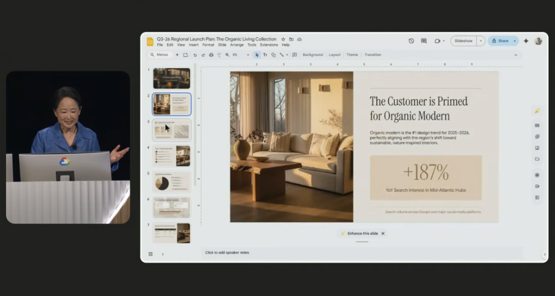 基于上述更新,谷歌云推出了面向企业洞察的深度研究代理。基于对所有结构化和非结构化数据的充分掌握,现在谷歌的数据智能体可以回答诸如“导致我供应链中断的根本原因是什么?”或“你能对该地区进行财务审计吗?”等复杂的业务问题,并提供此前需要消耗“数周人力”才能实现的精确度。