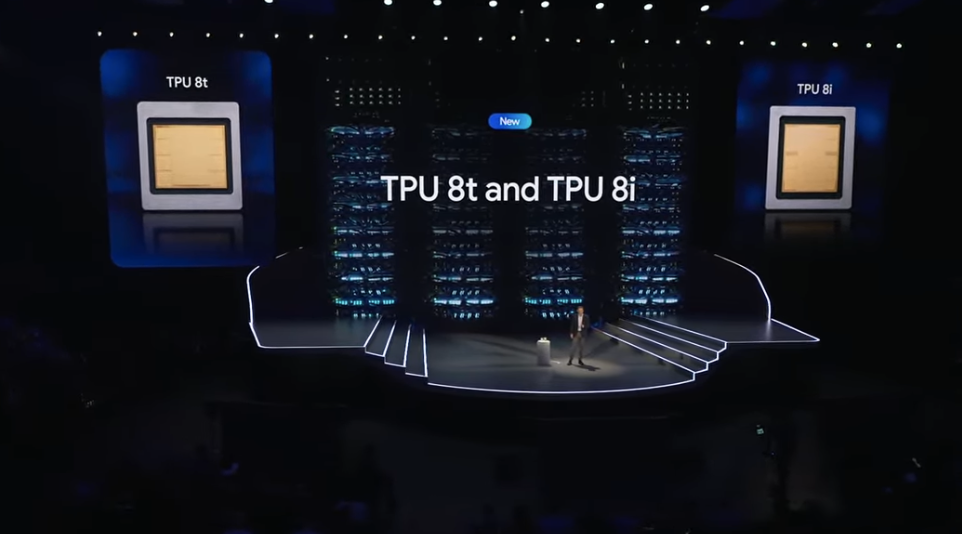 最受资本市场关注的张量处理单元(TPU)紧接着亮相。据财联社周三早些时候报道, 谷歌的第八代TPU正式拆分成两款不同的芯片 ,分别是针对AI模型训练的 TPU 8t 和更适合推理任务的 TPU 8i 。