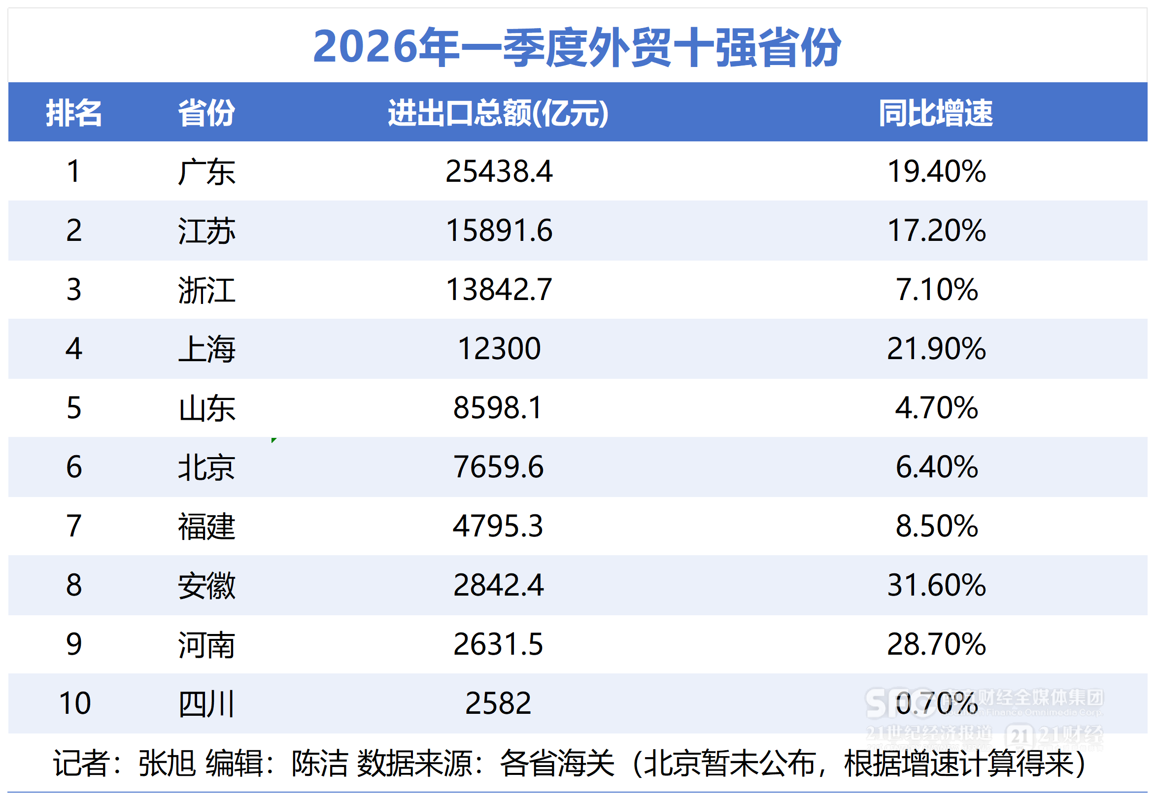 在全国数据公布后,各省也陆续交出一季度外贸“成绩单”。广东外贸以2.54万亿元的规模创下季度历史新高,继续稳居全国第一位,不仅实现量的突破,更体现了质的跃升。