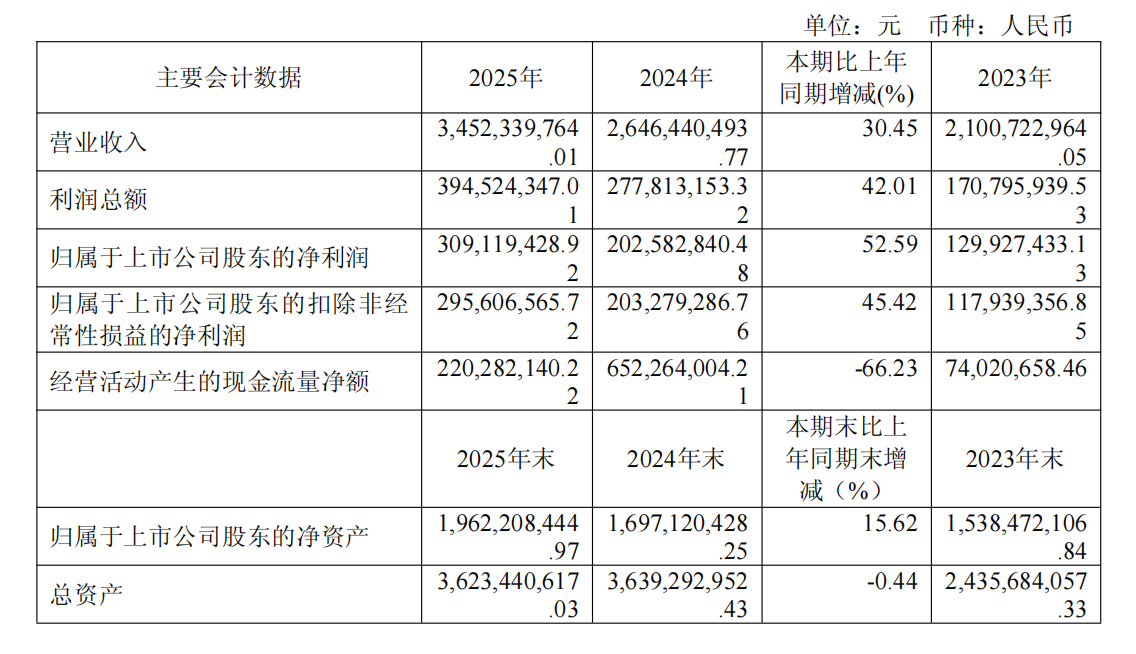 公告显示,2025年,莲花控股实现营业收入34.52亿元,同比增长30.45%;归母净利润3.09亿元,同比增长52.59%;2026年一季度,实现营业收入10.16亿元,同比增长28.01%;归母净利润1.43亿元,同比增长42.06%,均有显著增长。