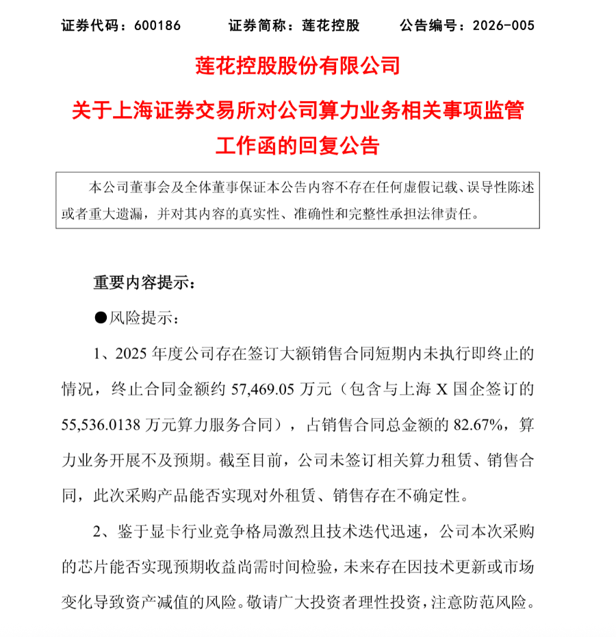 也就是说,因为公司跨界算力转型尚未完全达到规划效果,这笔高达5.55亿元、占销售合同总金额的82.67%的订单被迫取消,公司超过八成的合同将全部终止作废。这或许会导致,公司无力在2026年底之前完成既定规划。