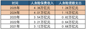 图 2 : 2021-2025 年人身险保费收入及理赔支出数据,根据国家金融监管总局统计