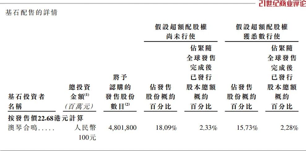 据悉,轻松健康上市时,全球仅发行2654万股,发售价22.68港元,募资6亿港元左右,且只有一名基石投资人“澳琴合鸣”,按发售价以1亿元人民币认购480万股。