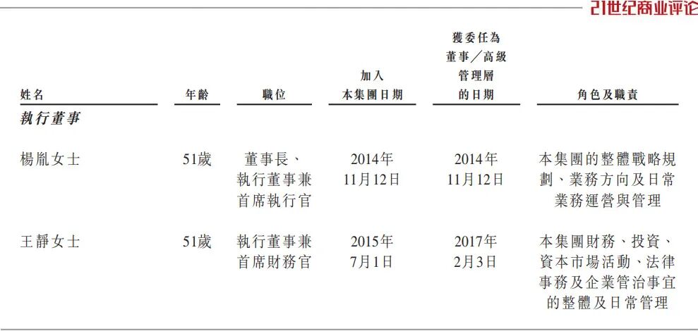 2017年2月起,王静兼任执行董事,负责集团财务、投资、资本市场活动及企业管治事宜的整体及日常管理,并监督集团的法律事务。