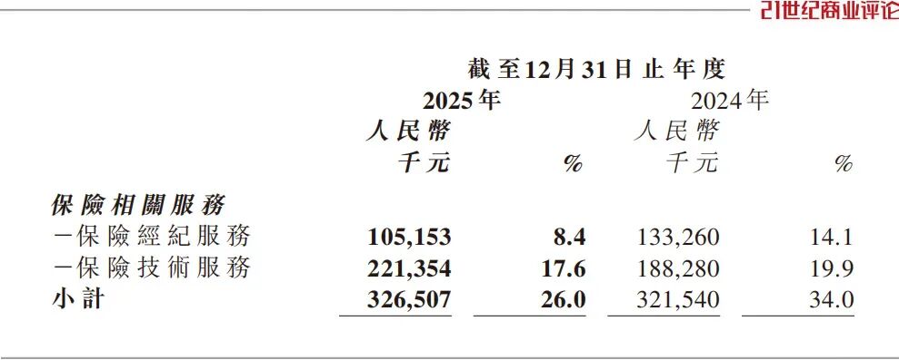 2025年,保险服务部分收入为3.27亿元,业务占比不到三成,毛利率很高。