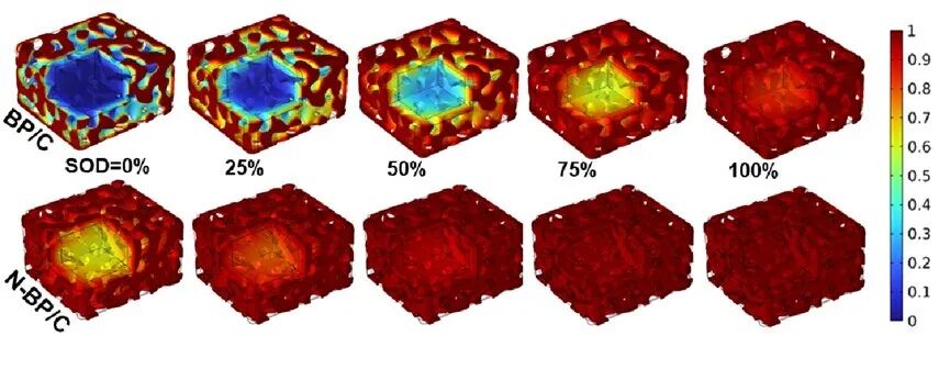 黑磷电极在不同放电状态下锂离子浓度分布优越性