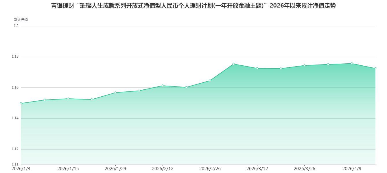 回顾往期业绩表现,产品自2022年5月成立以来,每个投资周期均实现正收益,2025年度年化收益率达到7.52%。进入2026年一季度,市场先经历春季火热行情,后又遭遇地缘冲突引发的全球金融市场震荡,青银理财延续一贯的投资理念与产品风格沉着应对,产品长期稳健底色不改,即便三月行业整体承压下挫,该产品依旧平稳穿越震荡周期。