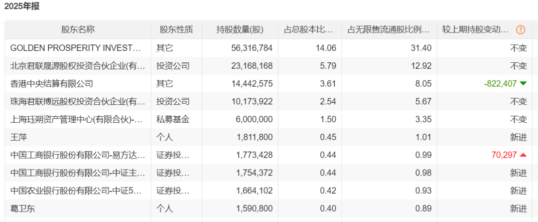 乖宝宠物发布的2025年年报显示,截至2025年底,葛卫东成为乖宝宠物新进前十大流通股股东,持股数量为159.08万股;葛卫东关联人王萍持股数量则为181.18万股。