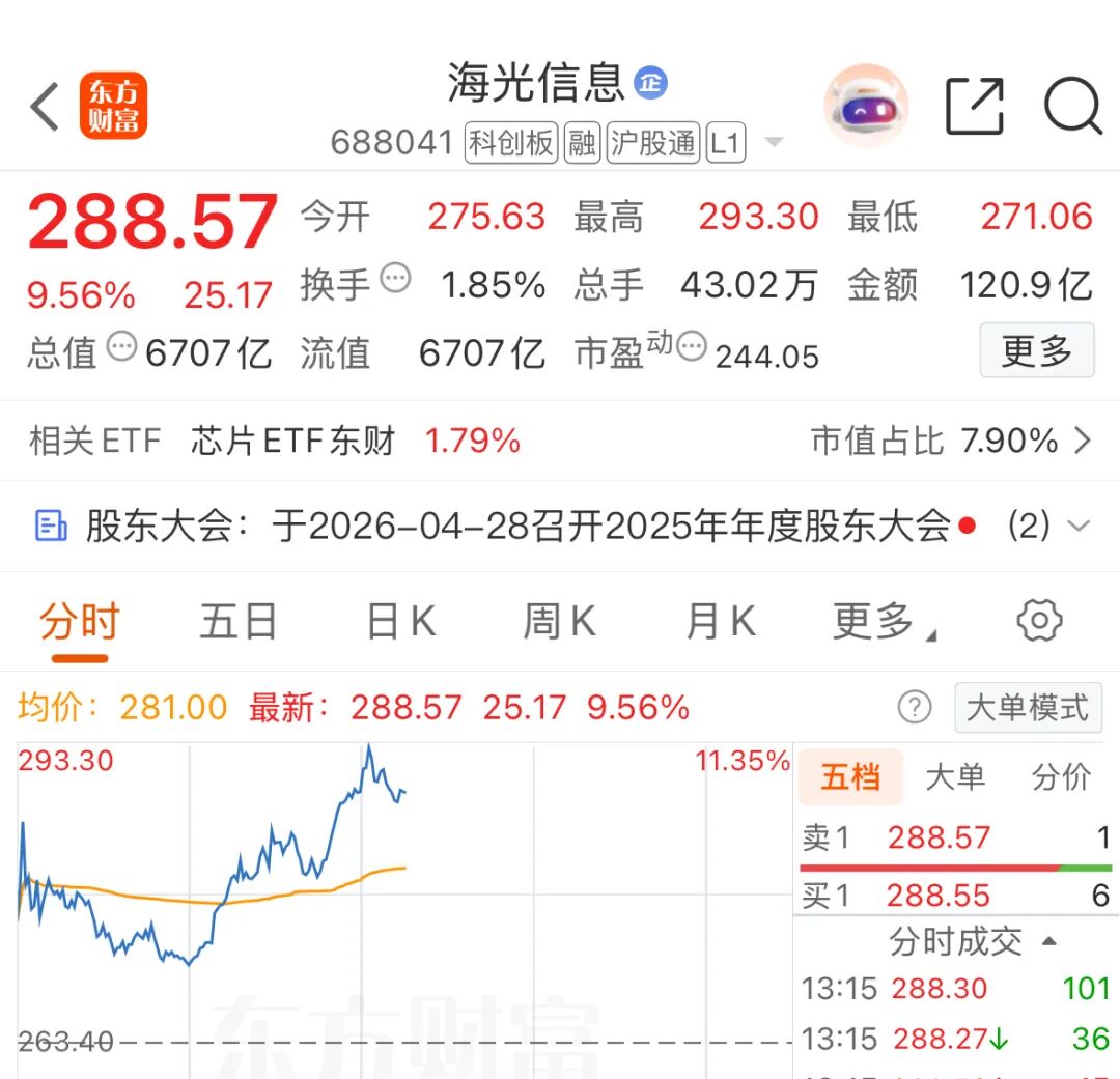 午后,算力芯片概念持续走高,海光信息(688041)一度涨超11%,寒武纪、摩尔线程等跟涨。