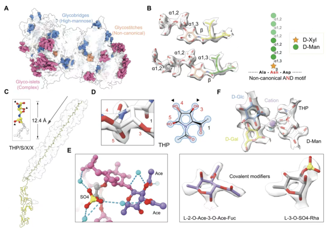 糖质是生命四大基本生物大分子之一,在细胞识别、信号转导、免疫调控和结构支持等多种生理过程中发挥关键作用。此次研究结果的分辨率水平使对天然糖质的直接可视化成为可能,不仅支持多种单糖类型的精确识别,也为乙酰化、甲基化和硫酸化等多种共价修饰的判定提供了明确的结构依据。在此基础上,研究者还通过整合结构生物学研究与靶向质谱技术,发现了一类基于“AND”基序的新型非经典N-糖基化类型,并借助结构聚类搜索揭示了该基序在多种高致病性物种中的进化保守性。与此同时,由颜宁实验室开发的AI自动建模工具EModelG显著提升了糖质结构自动建模的效率,推动糖质结构解析从依赖间接片段信息推断向高精度直接建模转变,也为复杂天然糖质的大规模结构研究提供了方法学支撑。