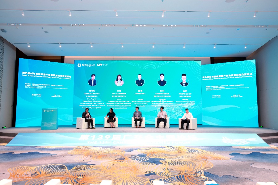 4月24日下午,中国对外贸易中心集团有限公司与中国五矿化工进出口商会共同主办“绿色建材与智能家居产业高质量出海交流活动”,吸引30多家国际采购商及贸服机构与100余家中国企业共230余位代表参与,以“论坛+对接”的形式深度交流,成为本届广交会期间贸促活动的亮点。