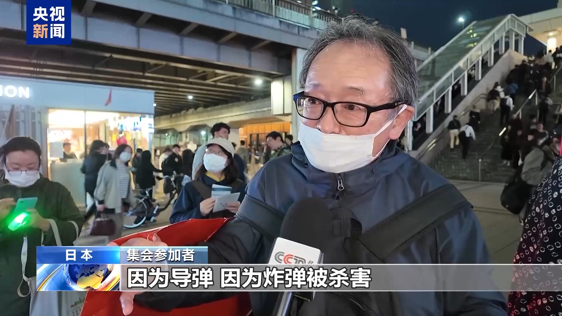 集会参加者:我们本应对80多年前的那场战争进行反省,但却没有做到,这绝对是不对的。如果有人因为那些武器,因为导弹、因为炸弹被杀害,这种事情你能接受吗?绝对不可能接受,根本无法接受。这种事情是绝对不能发生的,所以我坚决反对。