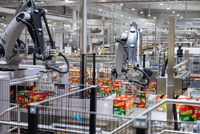 广东健力宝股份有限公司车间内,乌梅味汽水完成装箱。何艳纯 摄