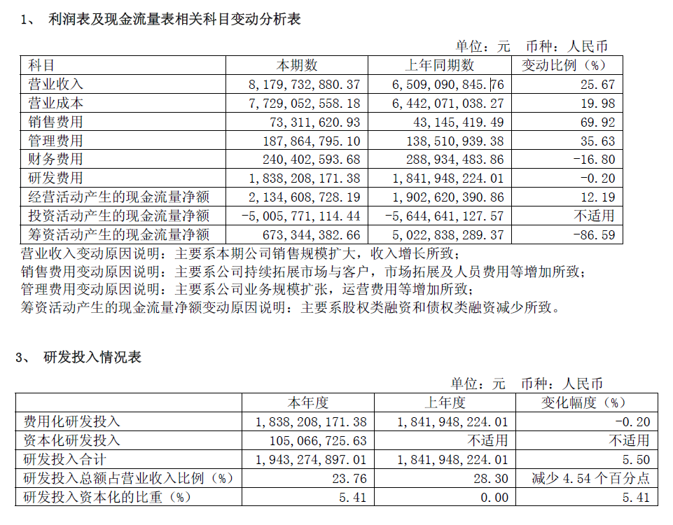 时代周报记者还发现,芯联集成-U2025年销售费用同比大增69.92%,远超营收25.67%的增速;公司此前研发投入全额费用化,2025年首次出现1.05亿元资本化研发投入。
