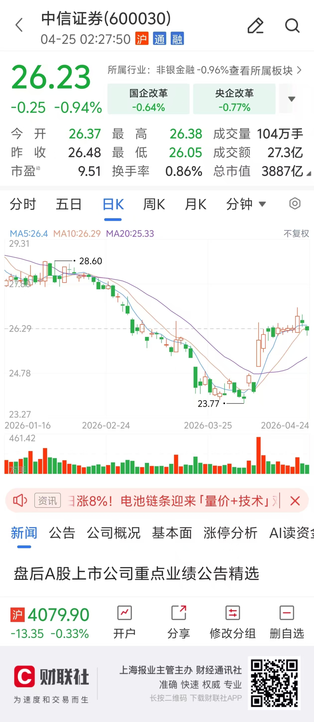 业绩大好的中金公司,公司股价也在业绩公布次日即4月16日高开涨2.09%。