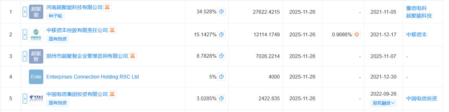 天眼查App显示,超聚变控股股东为河南超聚能科技有限公司,目前持股比例为34.528%。