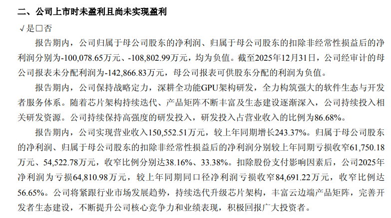 同日,摩尔线程正式公布2025年年报。