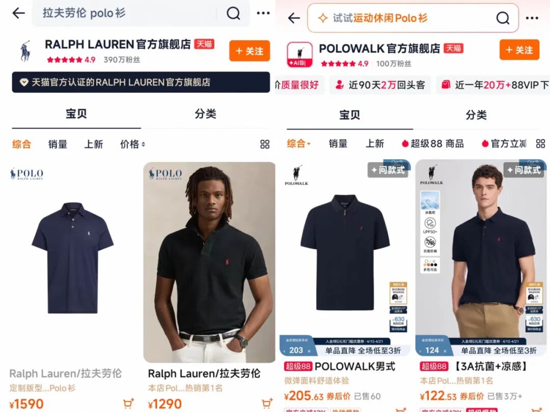有网友拆开标签发现,拉夫劳伦是100%棉,POLOWALK也是100%棉,论车工、扣子、领口的工艺,差距远没有价格差那么夸张。