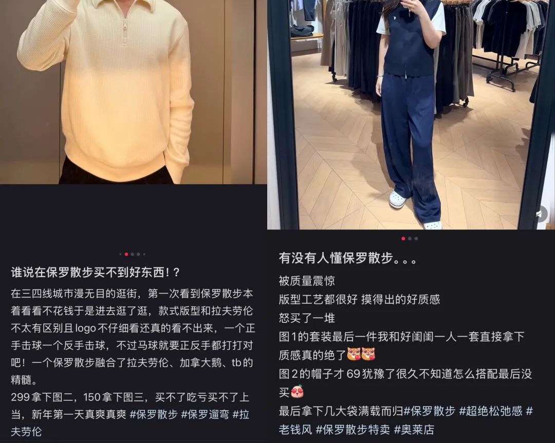在消费降级大环境下,“保罗散步”刚好踩中风口,用不到十分之一的价格,让追求“老钱风”格调但预算有限的年轻人找到了平替。