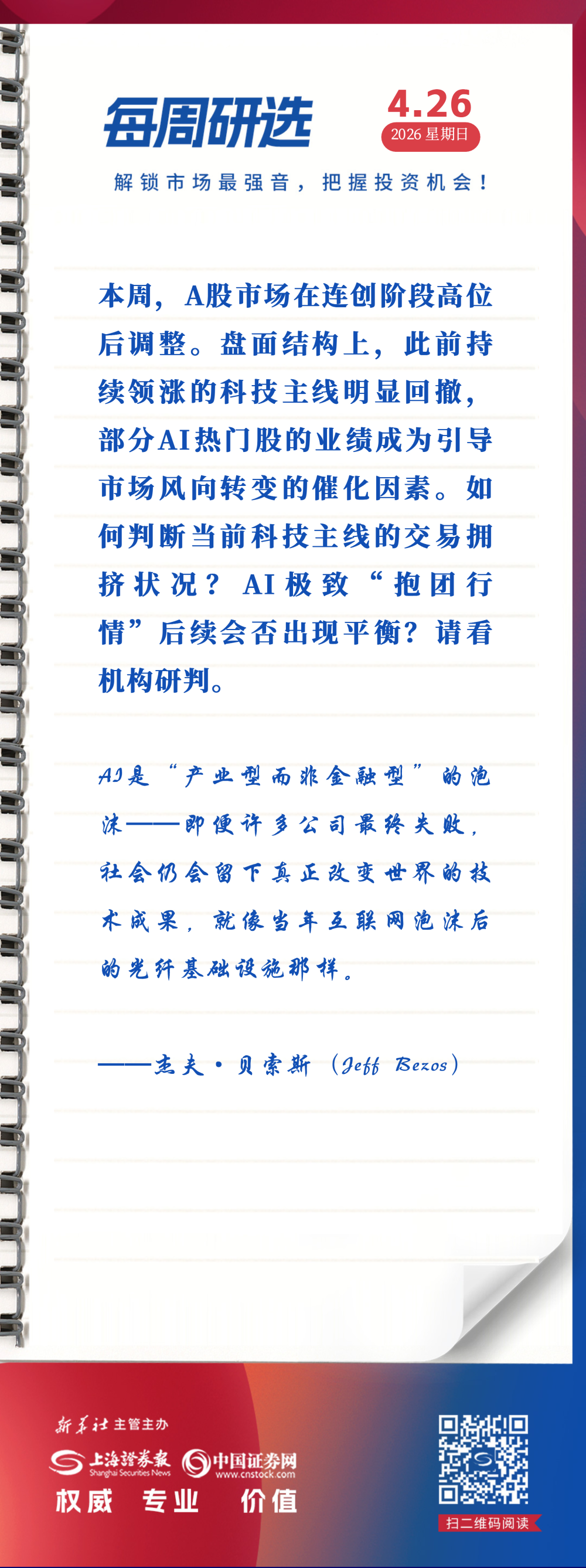 上证报中国证券网讯(记者 汪友若)本周,A股市场在连创阶段高位后调整。盘面结构上,此前持续领涨的科技主线明显回撤,部分AI热门股的业绩成为引导市场风向转变的催化因素。如何判断当前科技主线的交易拥挤状况?AI极致“抱团行情”后续会否出现平衡?请看机构研判。