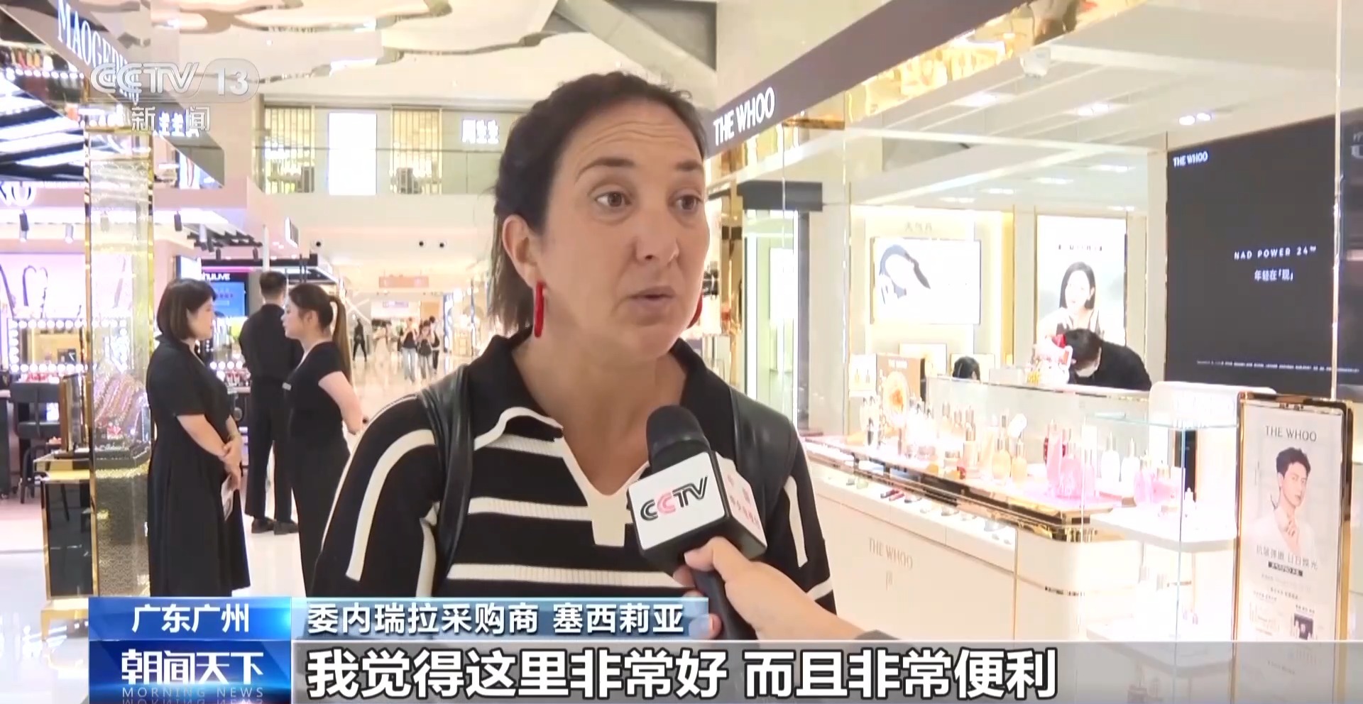随着境外游客持续增多,各大商场的消费热度也显著攀升。化妆品、运动服饰、家用电器成为外国客商青睐的热门选购品类。这家商场还推出了广交会客商来宾优惠月活动,境内外客商凭广交会证件,即可享受折上折优惠。