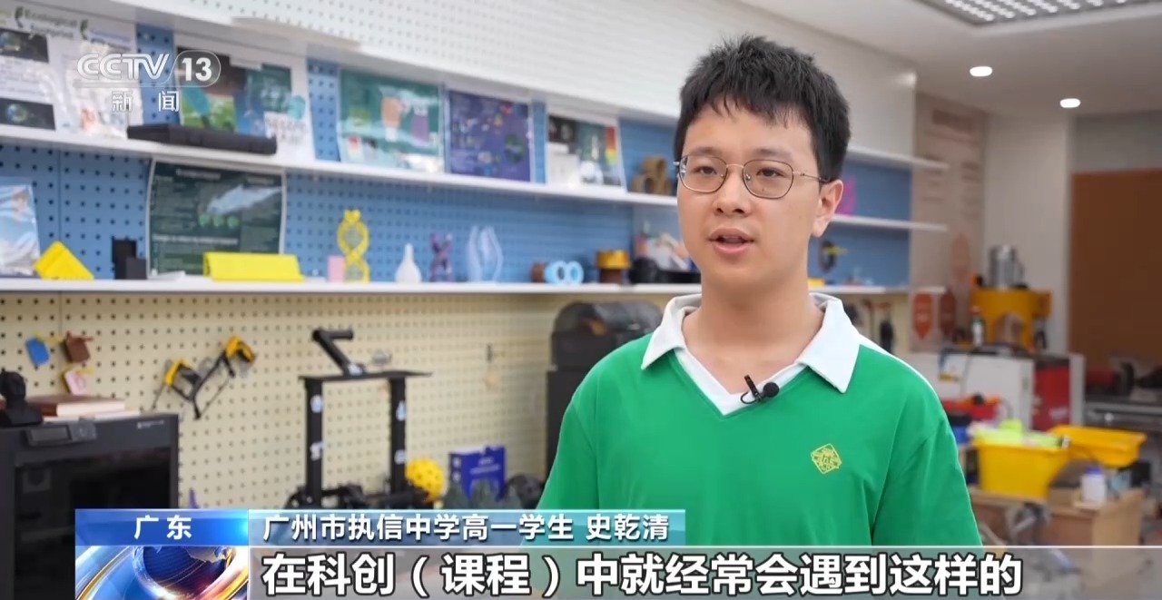 广州市执信中学高一学生 史乾清:我们在科创课程中经常会遇到跨学科交叉融合的一些内容,比如说这个任务里面既有化学的内容,也有物理的内容,当然还有大量数学的计算,我就可以把所有学科的知识融会贯通,难题解决能力都有了挺大的提高。