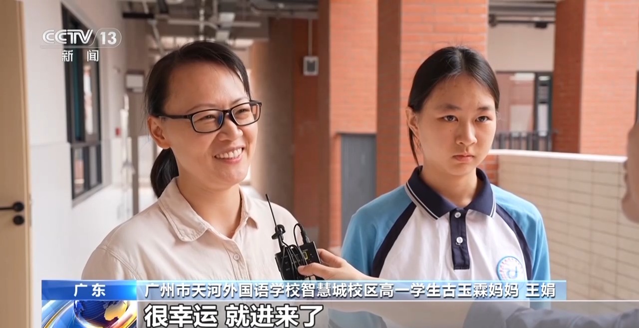 广州市天河外国语学校智慧城校区高一学生古玉霖妈妈 王娟:2025年学校就发公告,有开新校区,提供的学位会更多。我们就跟孩子商量说试一下,很幸运就进来了。