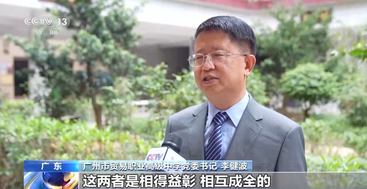 广州市贸易职业高级中学党委书记 李健波:以前只有中考一次分流,现在多了一个机会,家长缓解了普职分流的焦虑。我们综合高中借助高中精准的教学管理能力,提升中职的管理水平,同时也依托中职的教学内容,来丰富高中的教学。这两者是相得益彰、相互成全的。