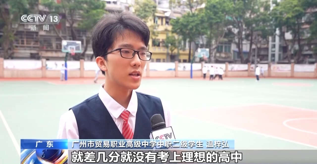 广州市贸易职业高级中学中职二级学生 温梓弘:就差几分没有考上理想的高中,不过还好有这个学校。如果可以的话,高考就冲本科;如果不行的话,就退而求其次去大专。