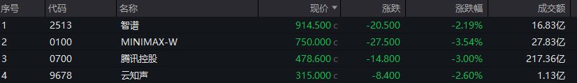 大模型概念走低,智谱、MINIMAX-W纷纷走低。
