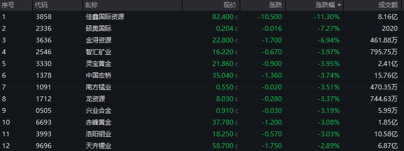 有色金属板块多股回调,灵宝黄金、中国宏桥等股跌超3%。