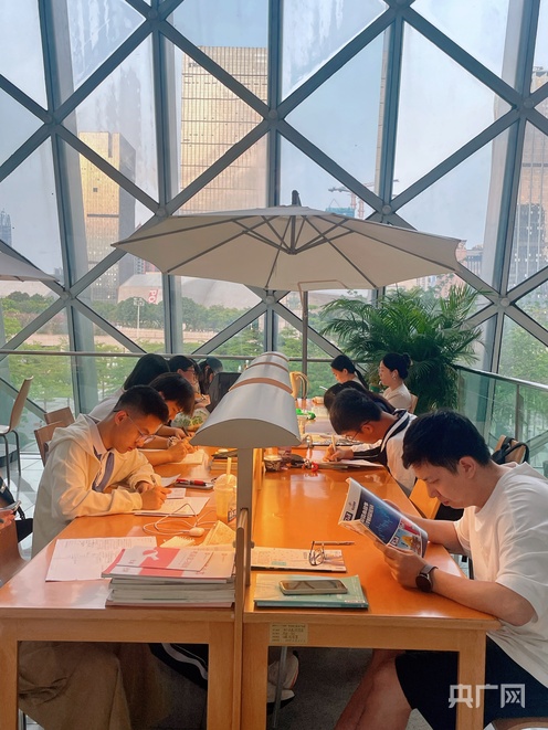 4月25日下午6时20分深圳图书馆内,自习区座无虚席(央广网见习记者郭媛 摄)