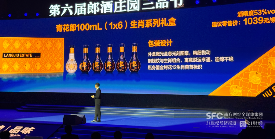 此外郎酒当天还推出了青花郎100ml(1x6)生肖系列礼盒,礼盒当中包括5瓶小批量青花郎、1瓶洞藏陈年青花郎,零售价1039元/条。
