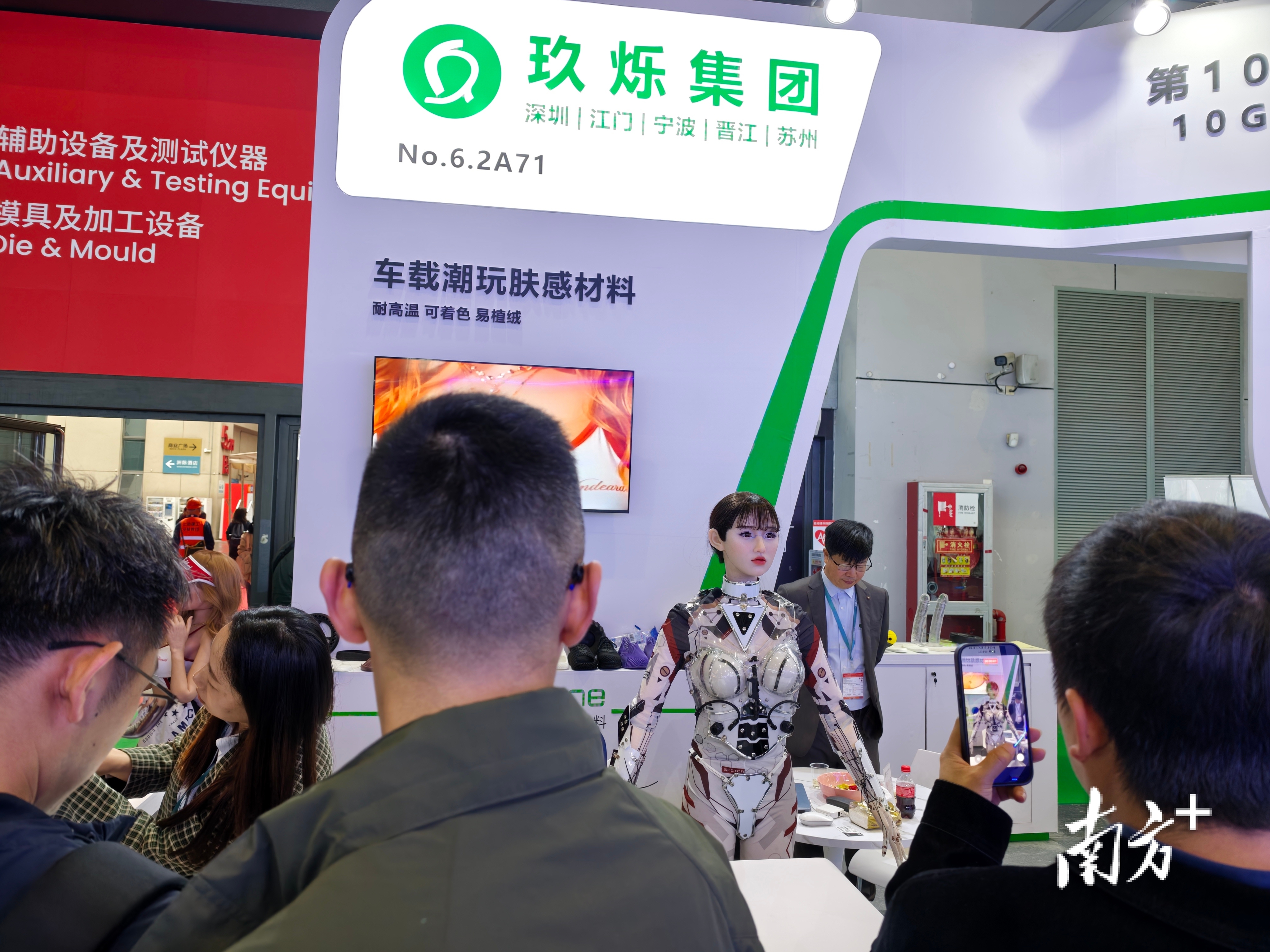 广东炫丽新材料的展位前,人形机器人身着仿真肌肤材料亮相。受访者供图