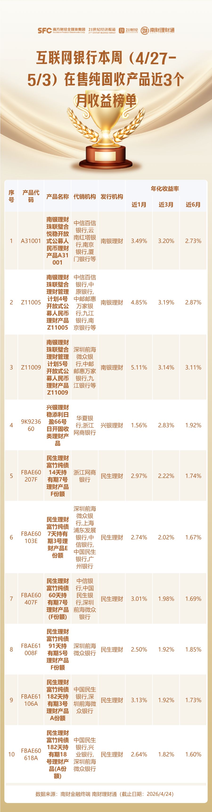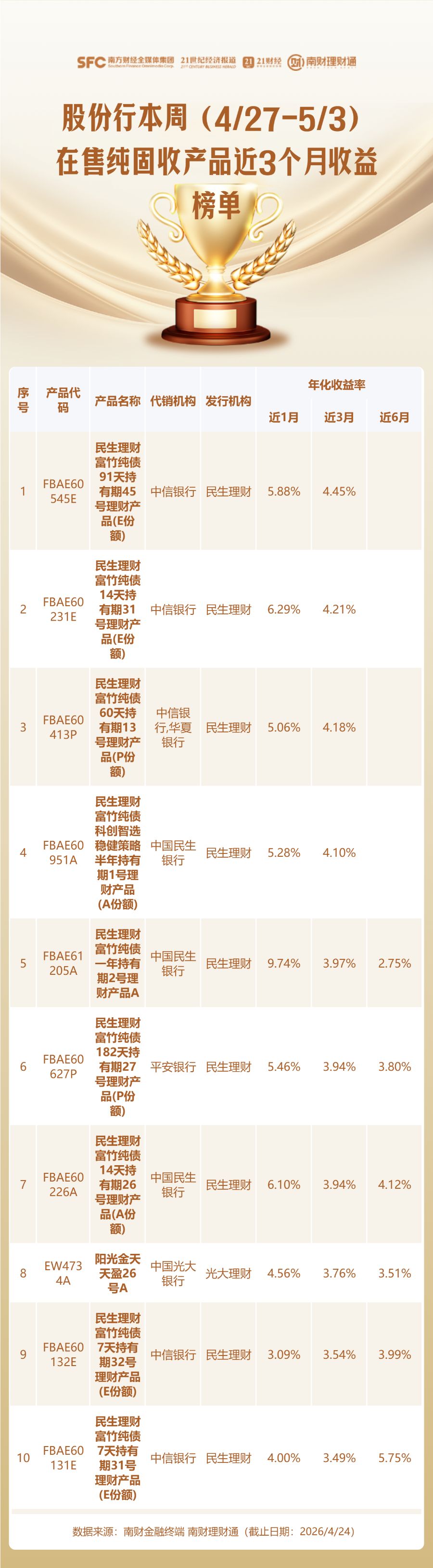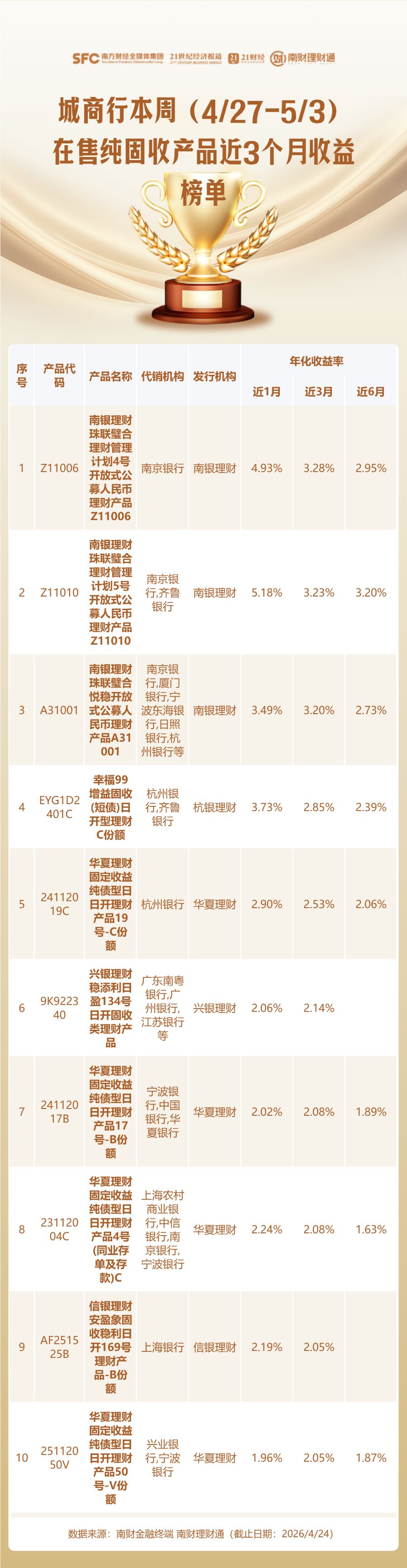 此外,南财理财通虽力求客观公正,但不对本评价榜信息的真实性、完整性和准确性作任何保证,排名信息仅供参考。