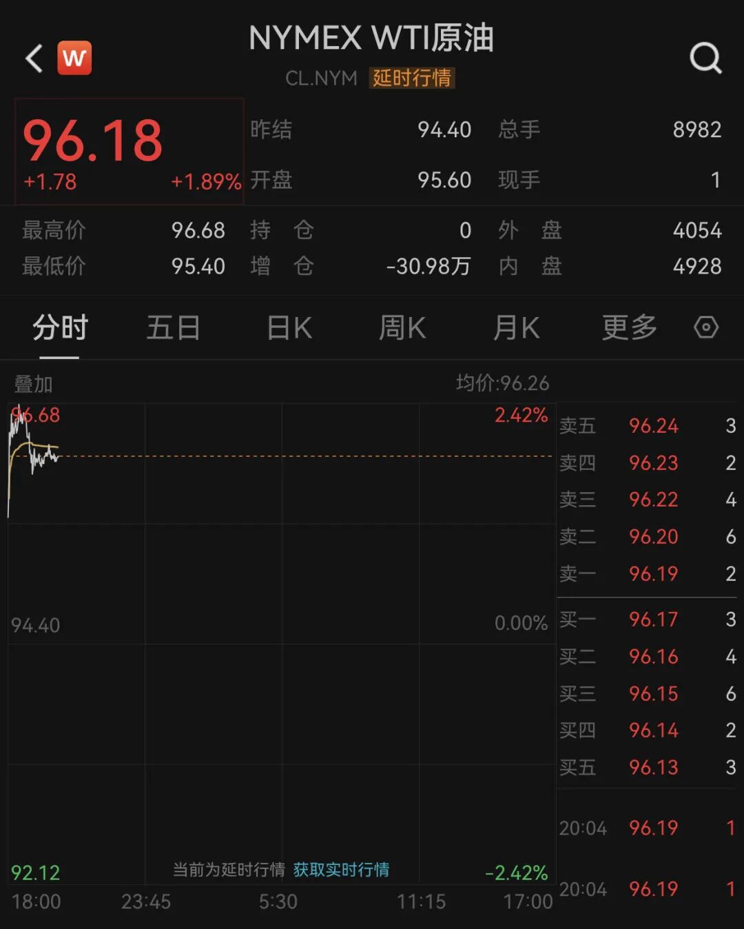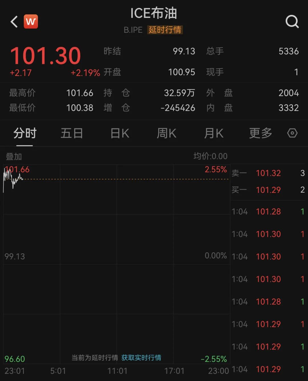 其他市场方面,国际油价大涨。截至发稿,NYMEX WTI原油涨近2%,ICE布油涨超2%。
