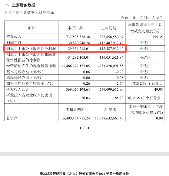 【导读】摩尔线程披露上市后首份一季报,实现同比扭亏为盈