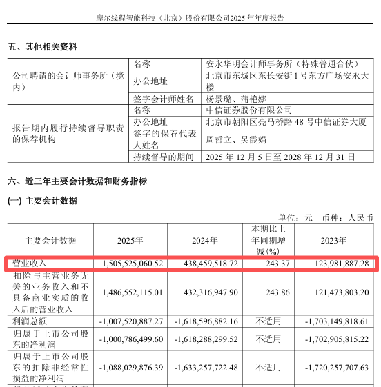 这是摩尔线程自2025年12月5日在科创板上市以后,披露的首份年报及一季报。