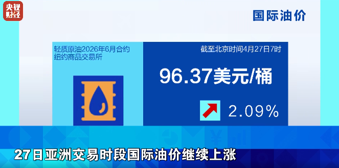 在刚刚过去的周末,由于美国总统特朗普取消美方代表前往巴基斯坦与伊朗谈判的行程、美伊谈判陷入停滞,加剧了全球能源市场的波动, 27日亚洲交易时段,国际油价继续保持涨势 ,纽约油价和布伦特油价的涨幅一度都超过2%。