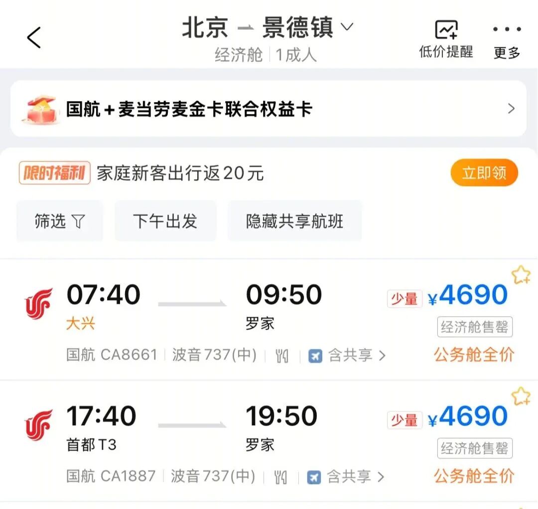 办公室的张姐这个“五一”原计划去景德镇,但是现在北京直飞景德镇的价格是这样的: