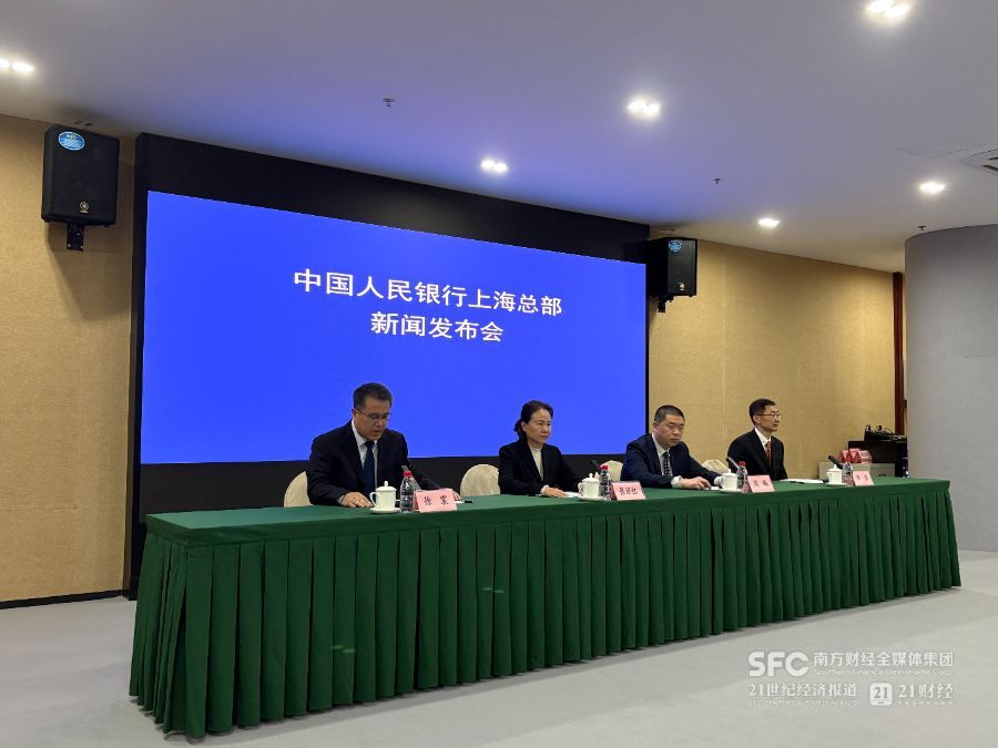 人民银行上海总部新闻发布会现场(21世纪经济报道记者摄)