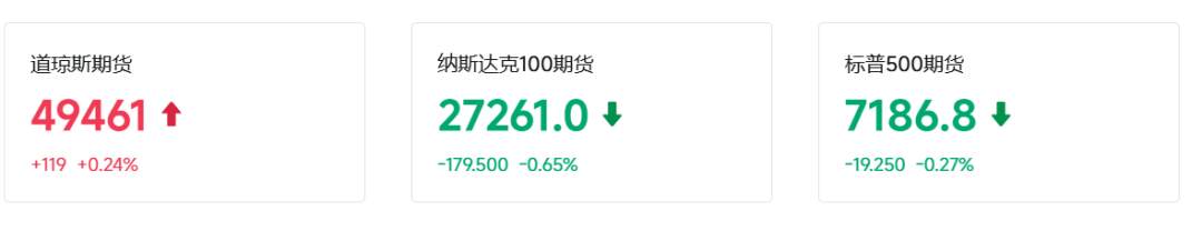 北京时间4月28日傍晚,美股三大期指涨跌不一,截至北京时间18点45分,道指期货涨0.24%,纳指期货跌0.65%,标普500期货跌0.27%。