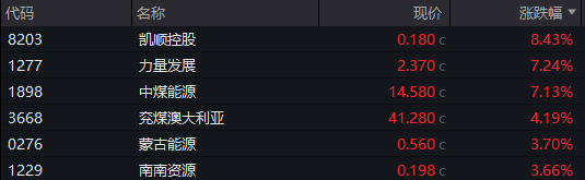 煤炭等能源股活跃,中煤能源涨超7%,蒙古能源、中国神华等跟涨。