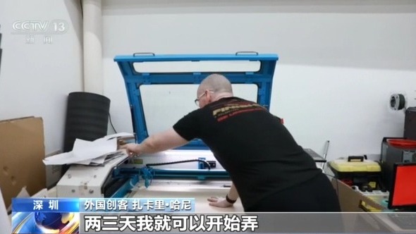 外国创客 扎卡里·哈尼:如果有新想法要开发,感觉在中国特别方便。去华强北逛一下,各种各样的东西都能买到,两三天我就可以开始弄。