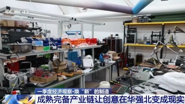 总台央视记者 张丛婧:这就是我们刚刚组装出的一架无人机,所有配件都是在这个楼里买到的,从一堆零散配件到这样的整机,只用了不到两个小时的时间。现在我们就来试一下它的功能到底如何,看它能不能飞起来。