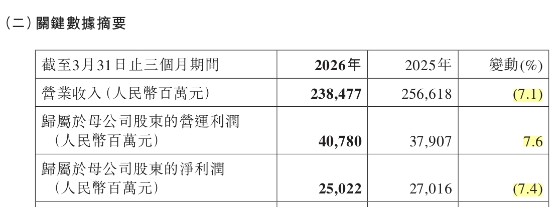 4月28日,中国平安(02318.HK,601318.SH)公布截至2026年3月31日三个月期间业绩。