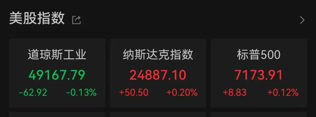 美东时间4月27日,美国股市再次刷新历史高位,从当日收盘数据来看,标普500指数报7173.91点,上涨约0.1%,创下历史最高收盘水平;纳斯达克综合指数报24887.10点,上涨约0.2%,同样刷新纪录;而道琼斯工业平均指数则收于49167.79点,小幅下跌约0.1%,未能同步创新高。