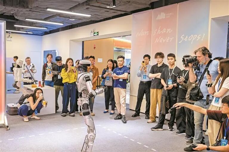 在深圳机器人谷,集聚了机器人产业链企业200余家,形成完整的机器人关键技术研发和零部件制造体系。深圳市南山区工业和信息化局副局长李娟说:“从大小脑模型等算法软件,触觉传感器、激光雷达等感知系统,到伺服电机、关节模组等执行系统,再到机械臂、灵巧手等核心部件,都能在深圳机器人谷找到优质供应商,实现快速交付”。