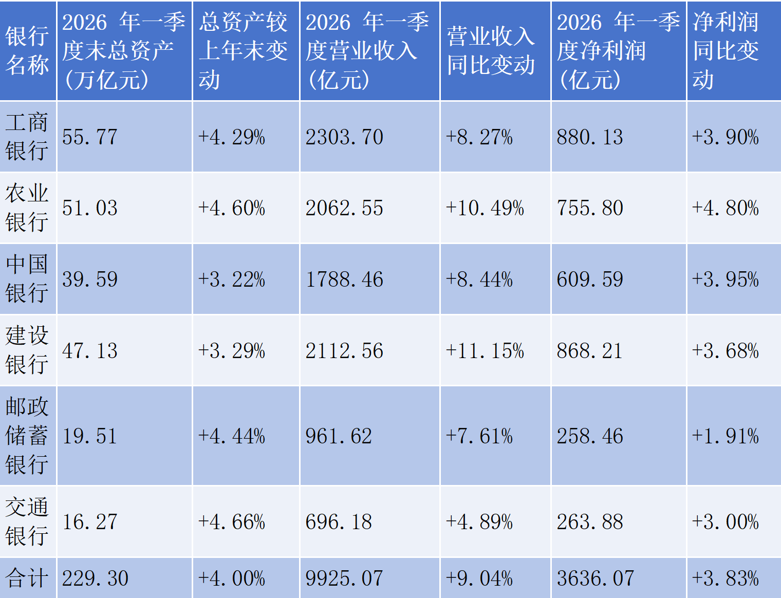 4月29日,国有六大行2026年一季度财报全部披露完毕,这份开年首份成绩单扭转了行业此前持续的息差承压、收入下滑的低迷预期。