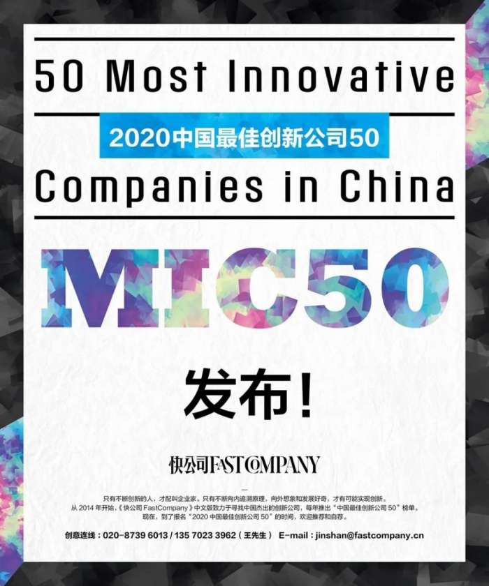 榜单由原《快公司Fast Company》中文版团队倾力打造。过去八年来,团队以对“创新”的独特理解和国际化的专业视觉与评判打造的“中国最佳创新公司50强(MIC50)”榜单享负盛名,造就出一个“中国创新界”。其历年对创新公司的深度挖掘、数据积累和研究成果,影响着中国新经济发展的最主要人群:企业家、投资人与城市管理者(政府部门)。